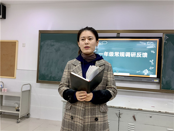接着是谭颂洁、钱明媛等老师对一年级六个班级课堂常规情况的总结汇报。每位老师都针对各个班级指出了其课堂常规的闪光点以及需要改进之处,其中蒋沂老师对于数学教学也提出了自己的经验之谈,让人受益匪浅。