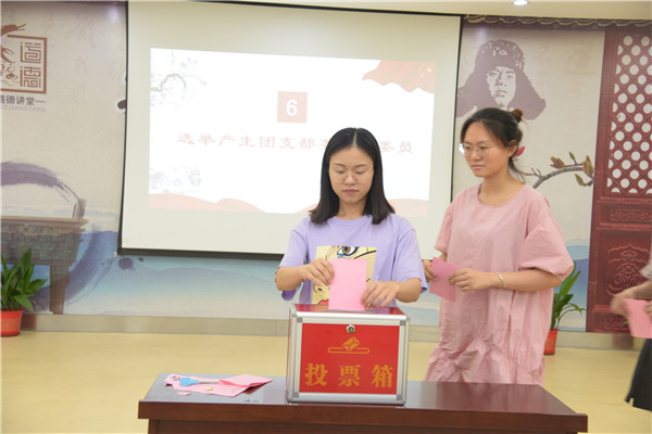 大会经过表决,产生了团支部委员会委员候选人预备人选6名。她们用热情激昂的自我介绍视频,向在座的团员同胞们展示了候选人的个人风采。根据筹备委员会的推选,青年团员教师王云姣同志担任本次选举的监票人,何婷霞、朱佳丽同志担任本次选举的计票人。在计票、唱票之后,主持人宣布陆舒怡、张云飞、李佳琪、贡娅婷、蒋倍丽等五位同志当选为常州市凤凰新城实验小学团支部委员会委员。紧接着召开了第一届委员会第一次会议,对团支部工作进行分工,陆舒怡同志当选为常州市凤凰新城实验小学团支部书记,蒋倍丽同志当选为副书记。