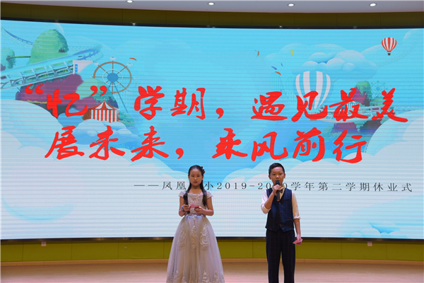 光阴似箭,不知不觉送走了短暂而充实的校园时光。岁月如梭,我们悄悄迎来了2020年的暑假生活。年华如水,乘风破浪,扬帆起航,扶摇直上。今天上午,在学校大报告厅举行了凤凰新城实验小学2019——2020学年第二学期“‘忆’学期,遇见最美;展未来,乘风前行”休业式。一年级和四年级的龙娃们在报告厅观看节目,其他年级通过直播在教室里观看。休业式节目丰富精彩,大家倍感欢乐。
