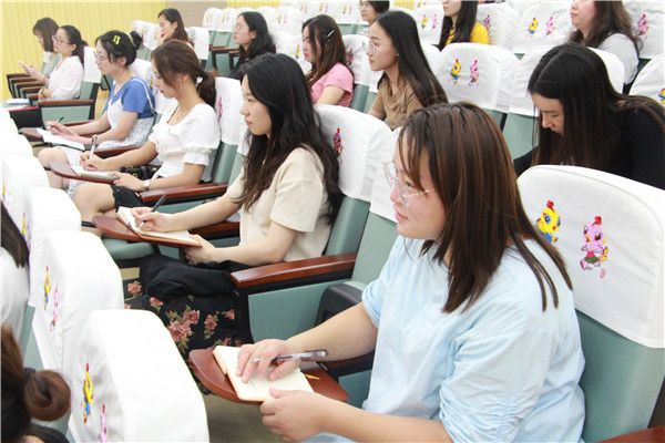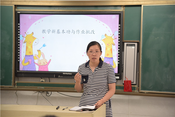 分学科培训会场上,各学科主任及教研组长为新教师做有针对性的学科指导,她们从上课、备课、作业批改、学业考评、课后辅导等方面进行详细指导,分析新教师可能出现的问题,分享自己常规管理上的小妙招。新教师们听得专注,记得认真,受益匪浅。