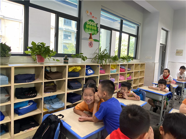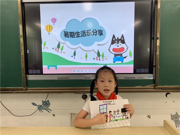 缤纷多彩的暑假很快就过去了,小龙娃们已经迫不及待的想跟同学们分享暑假的趣事了。瞧!刚走进教室,他们已经拿着各自的龙娃手册开始互相介绍了。“这个暑假我坐着小火车去了美丽的拉萨,欣赏了布达拉宫独特的美。”“暑假我去了海洋馆,我和小海狮进行了亲密接触。”“我在暑假学会了新本领——游泳”“暑假我和爸爸妈妈妹妹一起去露营……”看来小龙娃们的暑假真丰富呢,教室里时而欢呼雀跃,掌声不断,时而安静,认真听着同学讲述他的暑假故事。