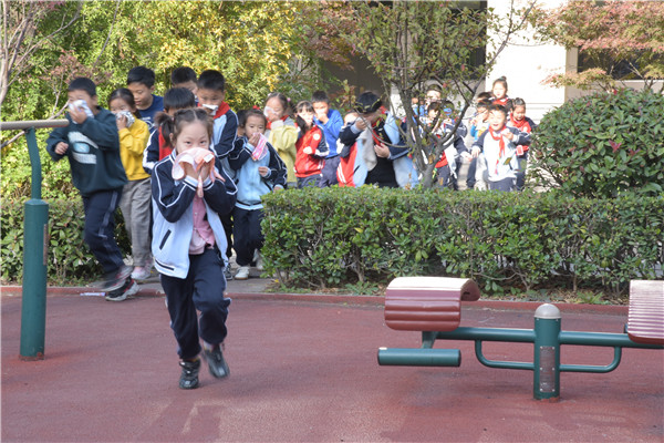 本次演练由我校后勤主任李同磊同志指挥。全体教师全员参与,积极护航,确保每项工作安全有序的开展。下午2点,平静的校园突然响起了警报铃声,各位老师迅速到达指定岗位,引导楼内学生快速疏散。各班任课教师带领学生捂住口鼻,弯腰撤离。各楼层导护教师协助安抚稳定学生情绪,指导帮助学生做出正确逃生姿势,沿着学校指定楼梯口逃生,有序地到达操场安全地带。各班主任随即清点人数,并向上汇报。