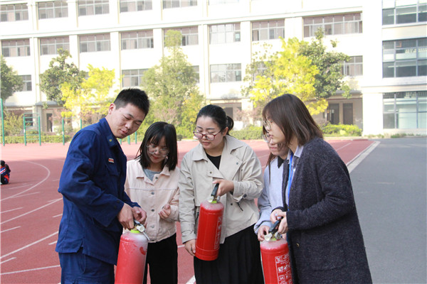 接着,李同磊主任为大家介绍了手提式灭火器的使用方法,并进行灭火器使用示范:一只手握住喷筒把手,另一只手拔去保险销,将扶把上的鸭嘴压下,对准火源根部灭火,然后组织全体教师分批次进行了实地灭火演练。经过此次培训,老师们很快掌握了灭火器使用要点,纷纷接过灭火器实地操作,更加促进了教师对灭火器操作的熟练程度,提高了处置突发火灾的能力。