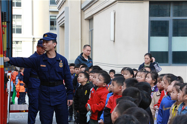 最后,一年级的小朋友们在班主任的带领下走近“消防车”,在消防叔叔的介绍中对消防车又有了更进一步的认识。“原来消防车里藏着这么多秘密呢!”“一辆消防车竟然能装得下这么多东西!”“我也想坐在消防员叔叔坐的位置上参加救火。”参观就在小朋友们一声声的感叹中结束了。
