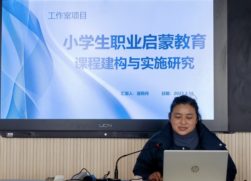 职业生涯教育贯穿整个教育过程的始终。随后,雕庄小学居莉丹老师就工作室项目《小学生职业启蒙教育课程建构与实施研究》的“核心概念及其界定、国内外研究现状与研究价值、研究的目标内容与重点、研究的思路过程与方法、主要观点与可能的创新之处”五大板块进行了详细介绍。在得知本项目已经通过省重点课题评审,成功立项后,老师们纷纷表示祝贺,同时对项目的实施充满期待。