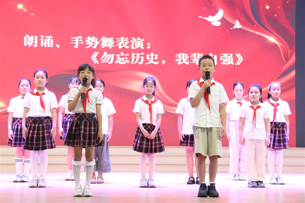 小海星中队的同学们还带来了深情朗诵和手势舞表演《勿忘历史,我辈自强》,他们用铿锵的语句和坚定的动作,传递“铭记国殇、奋发自强”的信念,展现新时代少年的责任与担当。